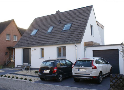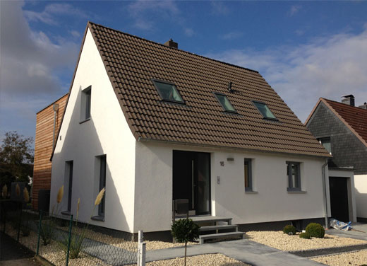 Um das intakte Straßenensemble nicht zu unterbrechen, wurde die vorhandene Kubatur des Einfamilienhauses zur Straßenseite nur geringfügig verändert.