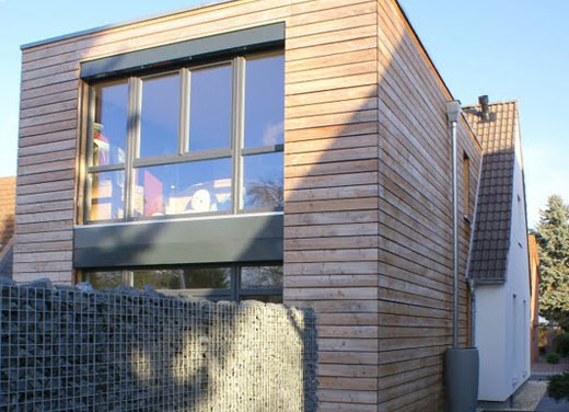 Zum Garten öffnet sich das Wohnhaus mit einem neuen Anbau.