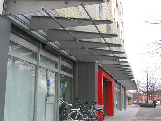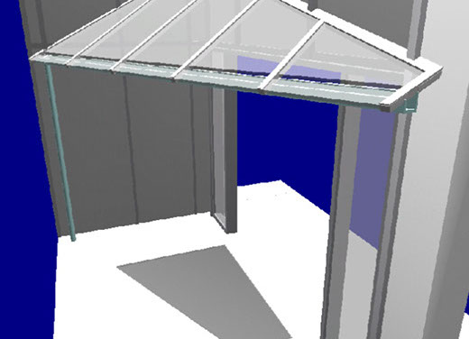 Für die umgestaltete Eingangssituaton wurde ein CAD- Modell des neuen Glasvordaches angefertigt.