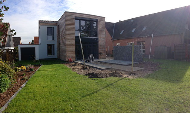 Zum Garten öffnet sich das Wohnhaus mit einem neuen Anbau.