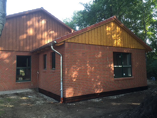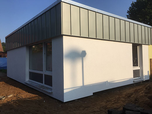 Der Kindergarten in Poggenhagen erhielt einen neuen Personalraum mit Teeküche und WC. Die Bebauung wurde dem Bestand angepasst.