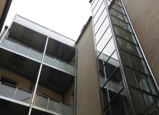 Im Innenhof wurde eine Balkonanlage sowie eine Aufzugsanlage montiert.