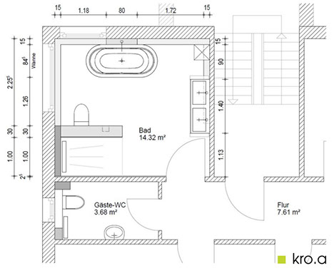 Bei dem Raum im OG des Wohnhauses handelte es sich um eine Wohnstube, die komplett entkernt und in ein modernes Familienbad umgebaut wurde.